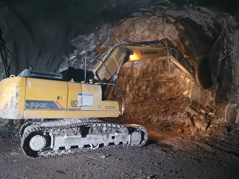 具體施工方法為,用巖石鋸在掌子面間隔5公分切割兩條切縫,切縫深度約為50-100公分,中間進行破碎,然后再用裂石器以中間破碎為中心,間隔0.5米左右打孔兩排,進行液壓開裂。就這樣周而復始,不斷切割不斷破碎前進,一天可進深4-5米,效果顯著,大大提高了隧道掘進的效率。