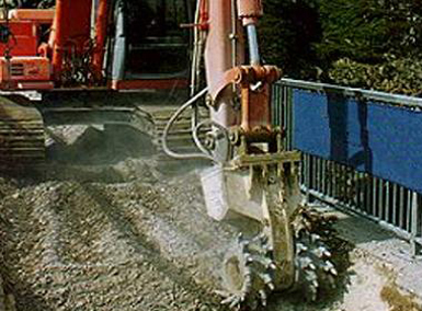 B)施工安全,效率高,銑挖出的顆粒小,可直接當(dāng)回填料。