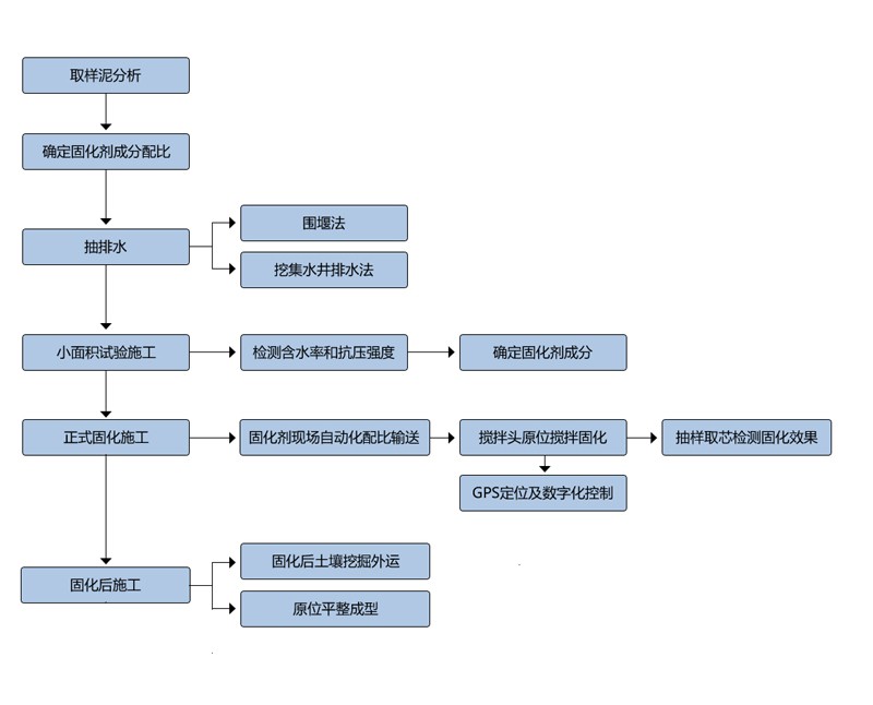 軟土原位固化/修復(fù)技術(shù)是一種利用土壤固化/修復(fù)劑直接作用于軟土(污泥、淤泥、灘涂、沼澤等),將軟土就地固化和修復(fù),形成復(fù)合穩(wěn)定、土質(zhì)良好基層的新型施工方案。該技術(shù)以環(huán)保節(jié)能為大前提,通過(guò)強(qiáng)力攪拌頭、挖掘機(jī)、智能配比工作臺(tái)和儲(chǔ)料設(shè)備與控制系統(tǒng)的完美協(xié)同,實(shí)現(xiàn)原位固化和土壤修復(fù)。