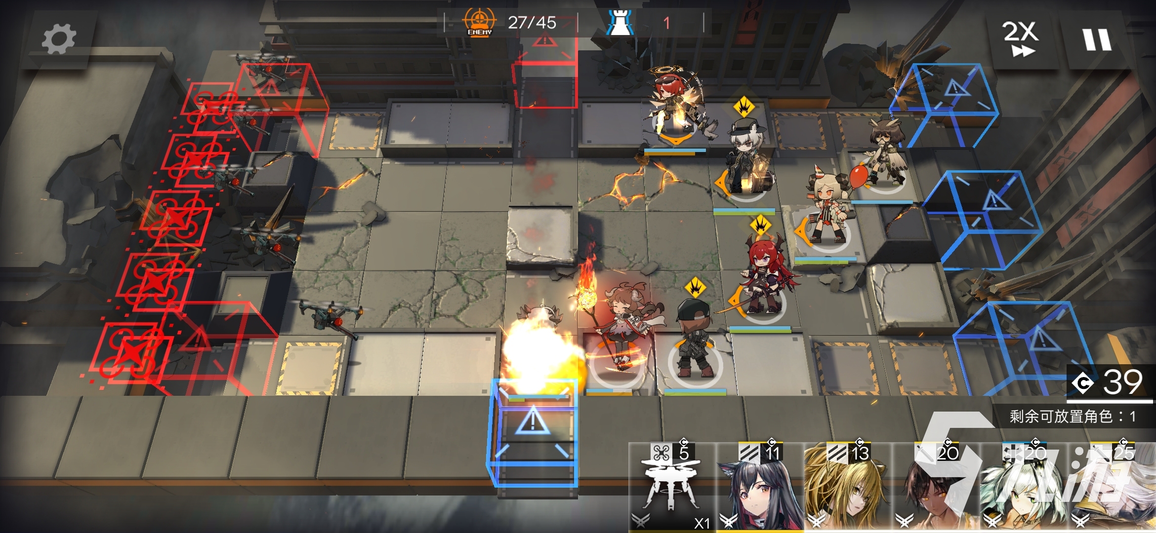 5、布置能天使在上方高地,封鎖死角,消滅全部的無(wú)人機(jī),取得通關(guān)。