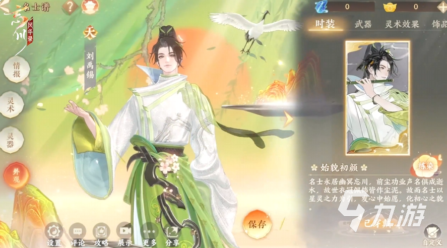 來源: 極光 作者: 油貓餅 2026年01月09日 14:56忘川風(fēng)華錄劉禹錫怎么樣?劉禹錫是全新天品角色,在外觀設(shè)計(jì)上是非有氣質(zhì)的古風(fēng)小生形象,手持一只笛子,著裝以白綠色為主,看上去十分清新,1.8日會正式上線與朋友們見面,這個游戲很多朋友關(guān)注已久卻還沒入坑,想要下載直接前往九游平臺,福利最多的目前就屬九游,它是阿里巴巴靈犀互娛旗下可靠品牌,有保證,接下來就看看角色詳細(xì)介紹。