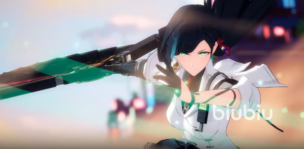 另一個(gè)手持巨型折扇的角色,似乎是叫“凜夜”,看上去像是風(fēng)屬性的,莫不是未來會(huì)實(shí)裝這個(gè)屬性?其造型上有點(diǎn)像重裝戰(zhàn)姬的貝姐,有點(diǎn)像古利特里面的寶多六花。反正是一個(gè)很颯的大姐姐就是了。但面部表情似乎并不豐富,可能是因?yàn)槲疫€沒解鎖她的心吧?
