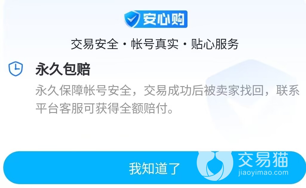交易貓平臺提供全面的售后保障服務(wù)。用戶可以選擇購買交易保險,以獲得額外的保障。或者我們在選擇商品的時候可以挑選具有找回包賠的,現(xiàn)在交易貓又有了更強(qiáng)的保障——永久包賠,不論是哪個方法都能在后面時效之內(nèi)賬號有非我們的問題出現(xiàn)之后獲得賠償。