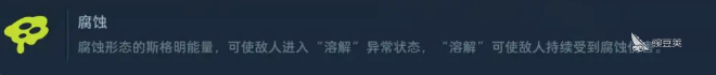 腐蝕元素主要就是持續(xù)掉血。幽冥毒皇這把槍打中怪物之后,怪物身上會(huì)出現(xiàn)溶解狀態(tài),一直在那掉血。層數(shù)疊得越高,掉血掉得越厲害。這種元素也有范圍傷害的玩法,勝利誓約的技能可以打出腐蝕范圍傷害,幽冥毒皇切換成榴彈模式爆炸之后也會(huì)在地上留下毒池,怪物踩上去就開(kāi)始持續(xù)中毒。