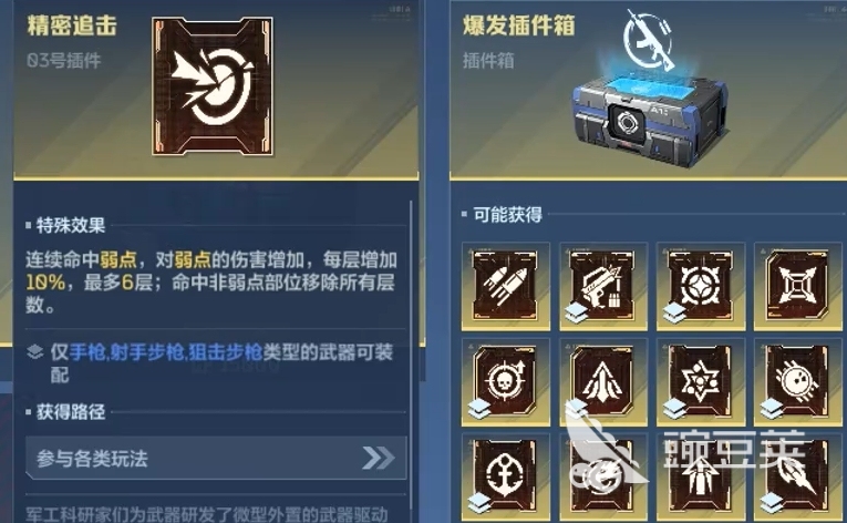 但品級并非是決定插件好壞的唯一標準,效果是否合適武器才是人們在搭配插件時優(yōu)先要考慮的事情。簡單來說在為武器搭配插件時,各位可先去查看各武器主技能和被動所附帶的效果,然后根據(jù)效果的觸發(fā)條件、加成方向,在不同插件位上挑選合適的插件來為武器裝配,只有在插件效果合適,且有高品級插件能完美地替換掉低品級插件時,人們再優(yōu)先考慮使用高品級插件,否則都只以插件效果為標準,而這就是插件裝配的原則。