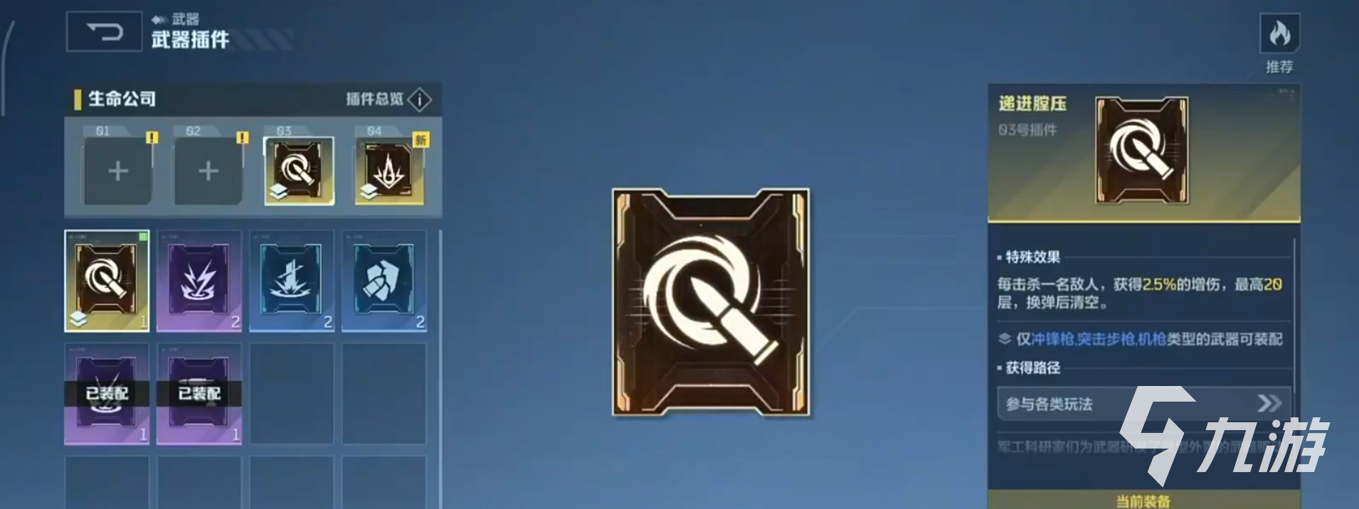 槍械可通過刷寶箱開出更多高品質(zhì)武器,重點(diǎn)在與裝配插件,帶來額外效果和屬性加成,一共有4個插件格子,不同位置插件并不互通,1號就只能安裝在1號;插件有顏色品質(zhì)區(qū)分,藍(lán)色紫色為低品質(zhì),可裝配所有武器;最好還是根據(jù)武器特點(diǎn)選擇合適插件;