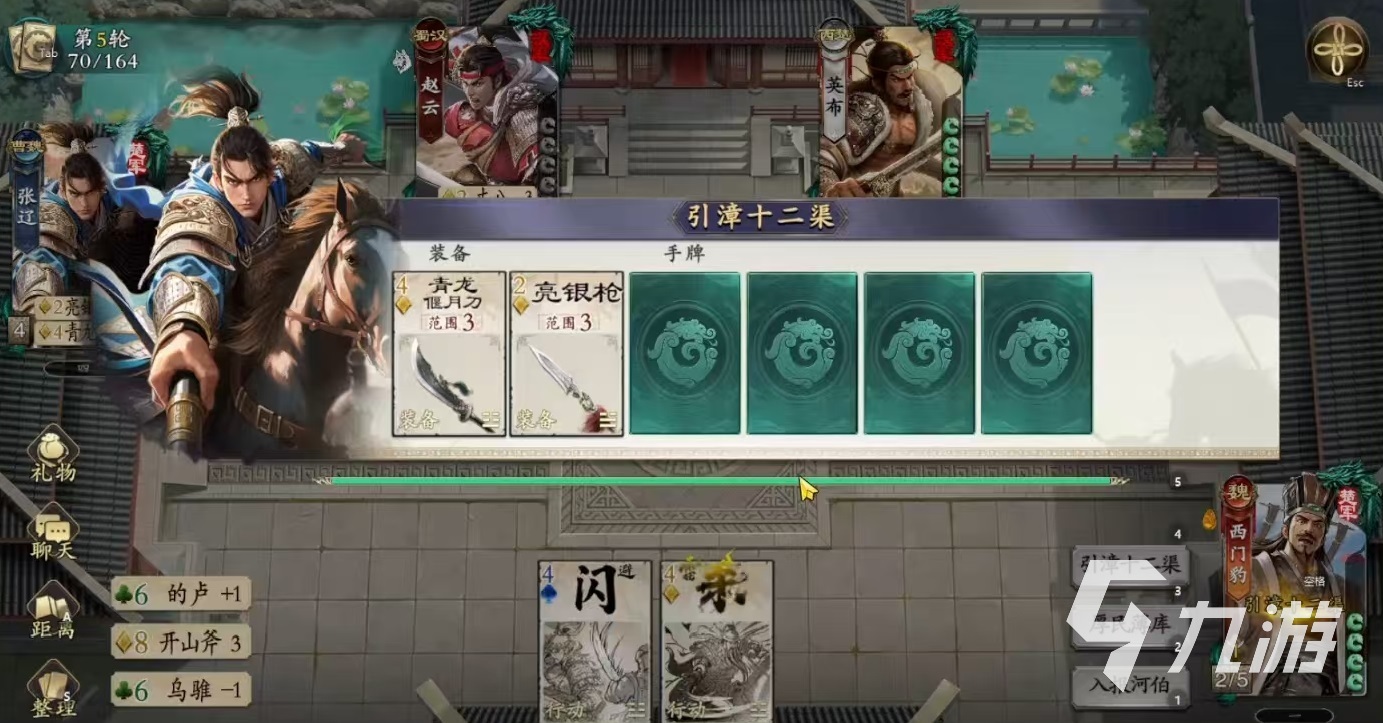 第三個技能入報河伯,限定技,可以將場上和棄牌堆中所有的黑桃牌洗回牌堆。這就相當于手牌中的黑桃都會被此技能洗入牌堆,這個技能其實就是配合引漳十二渠來發(fā)揮效果。相當于將黑桃牌給了對手,但是可以利用此技能再將對方手中的黑桃牌洗回到牌堆,所以該角色的三個技能設置的非常巧妙,環(huán)環(huán)相扣。