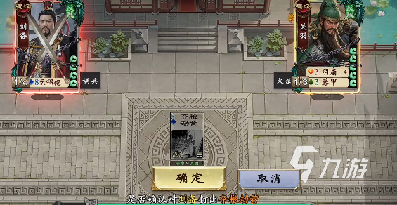 這個(gè)一技能可以指定它強(qiáng)行殺我方,然后利用卡牌奪糧劫營(yíng)去綁定自己和關(guān)羽還有劉備,在為自身裝備上藤甲,然后去多留一些回血卡,這么一來(lái)關(guān)羽受到強(qiáng)制命令后對(duì)其發(fā)動(dòng)攻擊以后,會(huì)返還給自身和劉備高額的傷害。