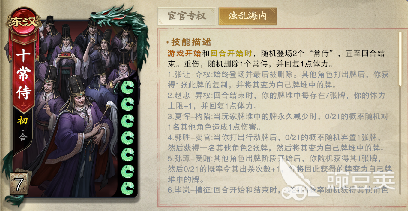 以上就是名將殺手游十常侍陣容比較好好用的2套了,這兩套陣容不管玩家使用那一套都能夠把十常侍給磨死,當(dāng)然了,陣容在選擇好以后,玩家也千萬不要忘記熟悉十常侍的打法攻略哦,挑戰(zhàn)十常侍經(jīng)常失敗的玩家快來使用這兩套陣容在重新試試吧。