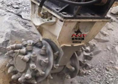 案例二山區(qū)建廠房,巨石當(dāng)?shù)溃?銑挖機(jī)銑平巨石,2012年8月,在浙江寧波一臺(tái)老款A(yù)F-5RW安裝于LOVOL260挖掘機(jī)上,用于銑切巨石,確保了安全施工。 |