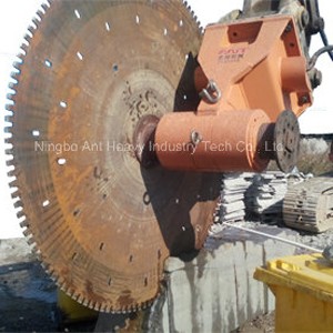 案例二2014年8月,在甘肅敦煌一臺恩特ADS20RS巖石鋸安裝于VOLVO360挖掘機上,配備3米直徑的金剛石鋸片,正在切割花崗巖,鋸切深度為1.2米,每小時行進速… |