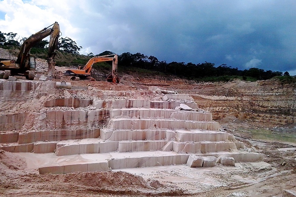 3、對硬巖進行鋸切后用破碎錘打擊采石效果非常好,而且成本低廉。