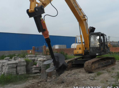 案例一2014年7月,在杭州的一臺AA-5G螺旋鉆機安裝于YC210挖掘機上,用于地面鉆直徑1.2米深度8米的孔,用來安裝移動發(fā)射塔設(shè)備。 |