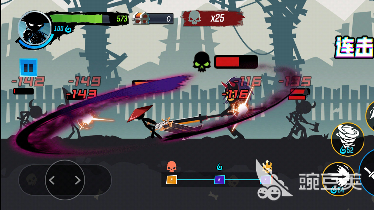 《火柴人大格斗》在這款游戲中,你將充當(dāng)一名火柴人忍者,你擁有著一身格斗本領(lǐng),所以在面對敵人的侵襲時(shí),你需要利用自身的格斗技巧,去打敗敵人。游戲非常新穎,它完美地把格斗和跑酷元素作了非常融洽的結(jié)合,可玩性提高的同時(shí),也能給玩家?guī)聿煌捏w驗(yàn),整個過程操作模式都非常簡單,只需要滑動輪盤操控火柴人,完成一系列打擊動作即可。