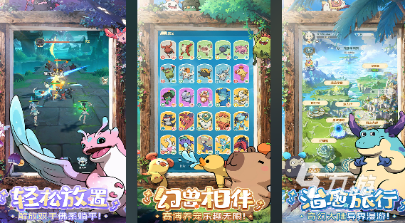 在卡通可愛的畫風(fēng)中,玩家與好友一起組隊(duì)完成各種冒險任務(wù),最多可容納四人同行。養(yǎng)成的趣多多,玩家在角色系統(tǒng)中可以為角色配備不同帶有數(shù)值的頭飾,并且想方設(shè)法增加一些其他屬性數(shù)值。在休閑玩法上,伙伴們還可以一起前往不同的地圖完成旅行。另外,因?yàn)橛捎趻鞕C(jī)的操作,所以玩家可以徹底地通過放置操作躺平得分。