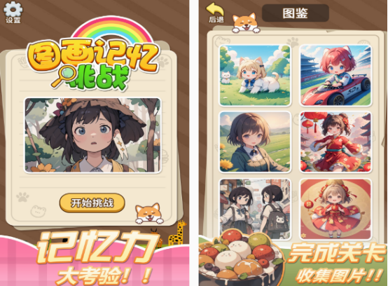 這款既考驗玩家的記憶,也需要有很好的觀察能力,具有豐富的玩法。在找不同的時候就需要你在圖片中找到幾處不同之處,還要在規(guī)定的時間內(nèi)完成任務(wù),你才能順利通關(guān)。另外就是在畫圖記憶挑戰(zhàn)中,你需要記住圖案中的一些細(xì)節(jié),然后在規(guī)定時間內(nèi)把細(xì)節(jié)全部準(zhǔn)確的還原,就可完成挑戰(zhàn)。里面有很多精美壁紙,利用下載圖片就可成為手機(jī)裝點(diǎn)屏幕的。