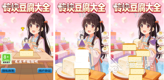 比較鍛煉大家的反應(yīng)能力以及專注力,開(kāi)局之后將會(huì)看到一位特別精美的人物角色,通過(guò)合理控制人物角色的方式精準(zhǔn)落在豆腐磚塊上,只要將豆腐磚塊堆疊的越來(lái)越高,獲得的分?jǐn)?shù)就會(huì)越高,每個(gè)關(guān)卡中都有不同的分?jǐn)?shù)要求,但是比較考驗(yàn)的就是大家的精準(zhǔn)瞄準(zhǔn)。