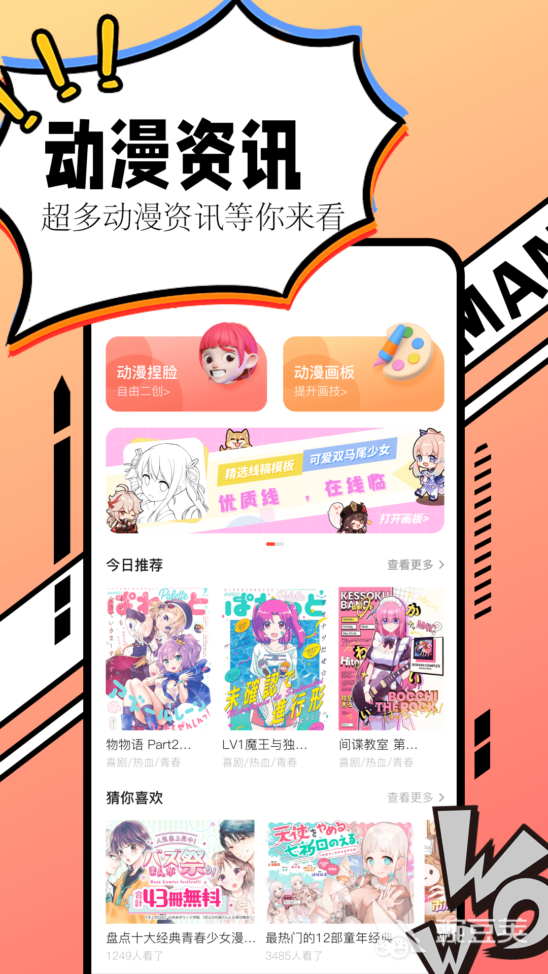 面向泛二次元用戶的綜合型閱讀平臺,整合多版權方優(yōu)質資源,構建穩(wěn)定、合規(guī)的內容生態(tài)。除常規(guī)閱讀功能外,內置輕量級手繪畫板模塊,支持截圖涂鴉、分鏡再創(chuàng)作與草圖速記,兼顧欣賞性與互動性,助力用戶培養(yǎng)視覺表達能力與原創(chuàng)思維習慣。