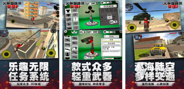 火柴人蜘蛛俠英雄2是一款非常經(jīng)典的火柴人風(fēng)格的動作游戲,而且游戲整體環(huán)境設(shè)定加入了大量的3D技術(shù),玩家可以操控蜘蛛俠,火柴人。和城市里的惡勢力進(jìn)行瘋狂決斗,游戲里設(shè)計(jì)了強(qiáng)大的武器庫系統(tǒng)和升級系統(tǒng),玩家可以利用對決過程中爆出的資源來對武器裝備進(jìn)行快速的等級提升,通過關(guān)卡模式讓玩家體驗(yàn)層層遞進(jìn)的歡樂,而且游戲當(dāng)中的武器裝備從輕武器到重武器款式眾多,滿足不同玩家們的需要。