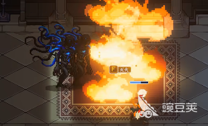 死亡瞬間,畫面轉(zhuǎn)入一段藍(lán)色夢境過渡,角色意識回歸同一城堡,但時間坐標(biāo)已回溯至過去。此時怪物尚未完成屬性強(qiáng)化,不僅戰(zhàn)力大幅削弱,更喪失偵測主角位置的能力。玩家可精準(zhǔn)定位其所在地毯并執(zhí)行點燃操作——火焰將直接對其造成致命判定,完成根源清除。