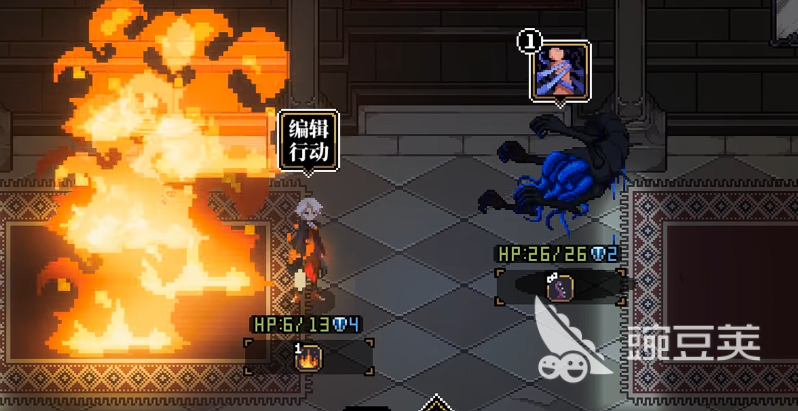 該場景位于一座全黑調(diào)城堡內(nèi)部,環(huán)境壓抑且無常規(guī)出口。地圖中央潛伏一只高階黑色怪物,其基礎(chǔ)屬性設(shè)定為滿額血量與全額防御,常規(guī)陣容無法造成有效壓制,硬性輸出將導(dǎo)致永久循環(huán)或角色陣亡。此時,唯一突破口在于場景交互:地毯作為關(guān)鍵道具,具備可點擊的“點燃”指令。